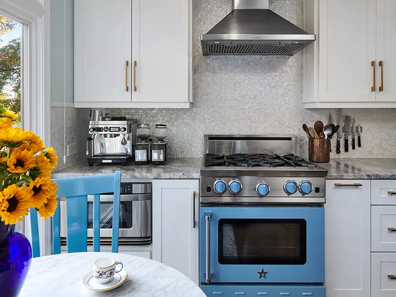 The homeowners, initially hesitant about the use of copper cladding in such a prominent location on their home’s front façade, trusted their architect and fell in love with the material’s dynamic color range and changes over time as it naturally patinas. They view their home’s renovation as a piece of art done specifically for them and their needs.